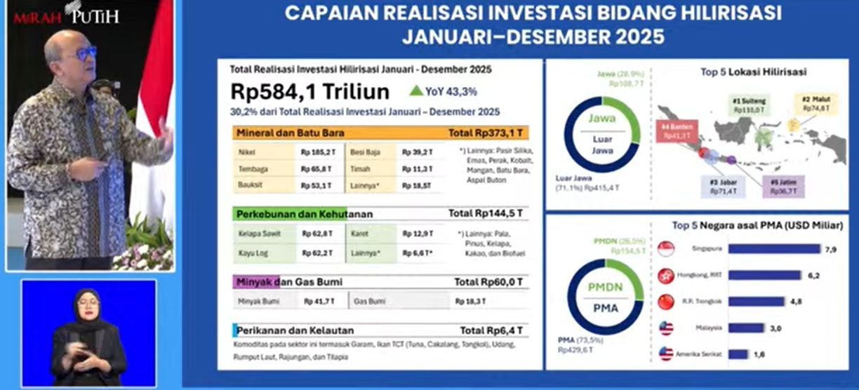 Kementerian Investasi mencatat pertumbuhan 43,3% sepanjang 2025 dengan sektor mineral sebagai motor utama penggerak ekonomi nasional.